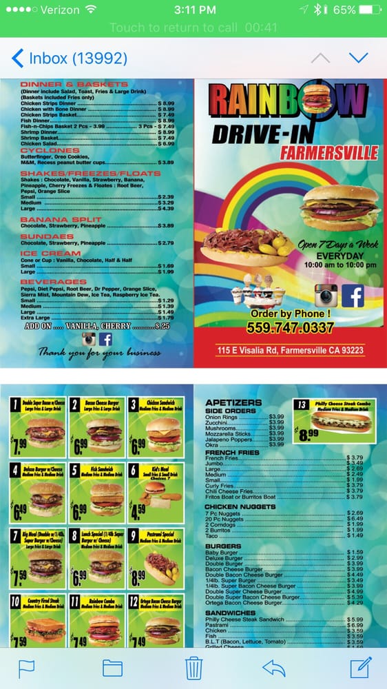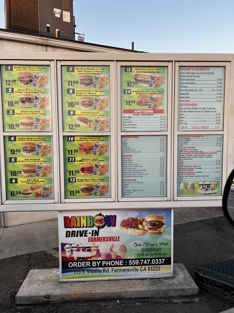 Rainbow Drive-In is a fast-food restaurant located in Farmersville, CA, offering a variety of options, including burgers, shakes, fries, and ice cream. Customers praise the juicy, flavorful burgers like the double cheeseburger with bacon, served with seasoned fries and a large drink. The menu also includes options like the cheeseburger with a medium drink and special seasoned fries. The drive-in boasts a clean and inviting atmosphere, with friendly waitstaff and a high level of service. Visitors appreciate the generous portions at reasonable prices, making it a great spot for a quick and satisfying meal. Additionally, the restaurant offers outdoor seating, catering services, and alcoholic beverages. Rainbow Drive-In provides a cozy and enjoyable dining experience, earning its place as a top fast-food spot in California.